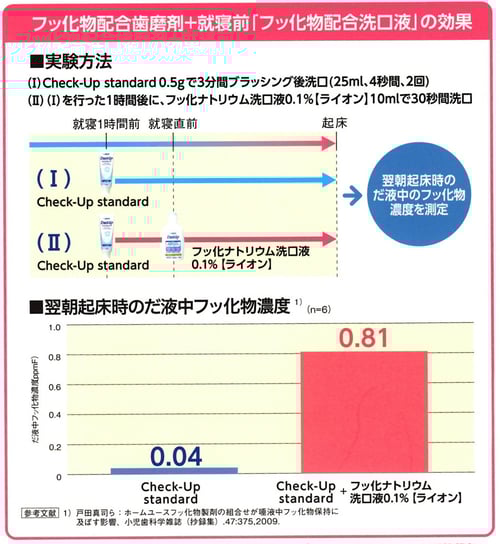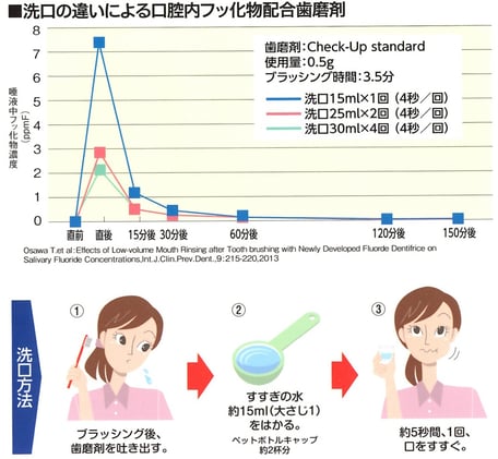 そのため口の中のフッ素濃度を長時間、再石灰化濃度以上に保つ使用法が効果的です。